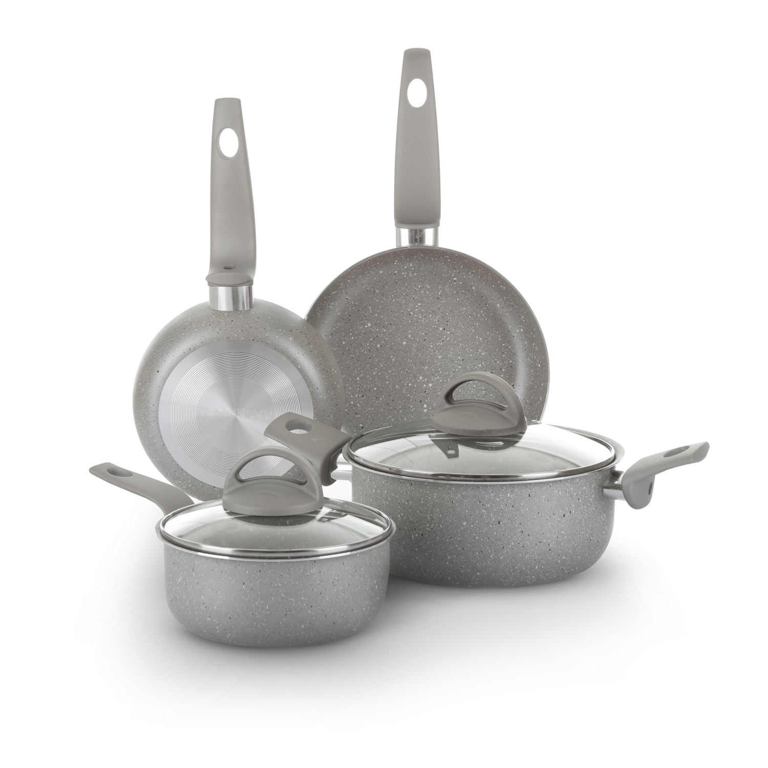 Una batteria antiaderente composta dagli elementi base per le tue preparazioni di ogni giorno. Set cottura 6 pezzi: 2 casseruole 16 e 20 cm, 2 padelle 18 e 22 cm, 2 coperchi 16 e 20 cm;