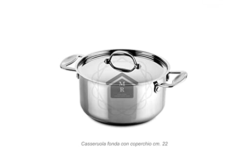 01 Casseruola fonda 2 manici con coperchio cm. Ø 22xH11 litri 4,10