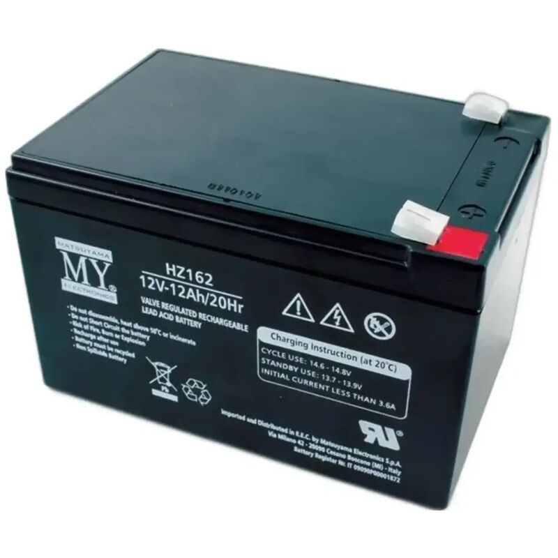 Batteria al piombo ricaricabile 12Ah 12 volt tecnologia al piombo da ricaricare dopo l'uso di uso comune nelle macchinine elettriche per bambini altezza 94 mm lunghezza 151 mm profondità 98 mm