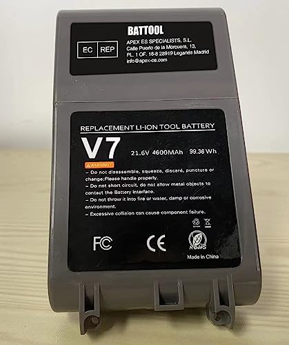 ompatibile con tutti gli aspirapolvere V7, batteria di ricambio, non originale. per Dyson serie V7: V7 / SV11 / Motorhead Pro / Motorhead + / Motorhead Complete / Fluffy / Fluffy Pro / Animal Pro / Trigger + / Trigger Pro / Materasso / Absolute ecc. Ma il SV07 e il Dyson V7 Animal non sono compatibili.