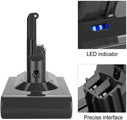 Indicatore LED:Per dyson v8 absolute ricambi batteria con l'indicatore LED può mostrare lo stato della batteria. È facile sapere se la batteria è completamente carica. Le prestazioni sono buone come la dyson v8 batteria originale e ha le stesse dimensioni dell'originale e si adatta al caricabatterie Dyson V8 e al caricatore da parete.