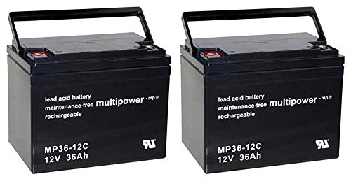 Batteria di ricambio per Invacare Butler 2 X Multipower 12 V - 36 Ah, resistente ai cicli, AGM VRLA