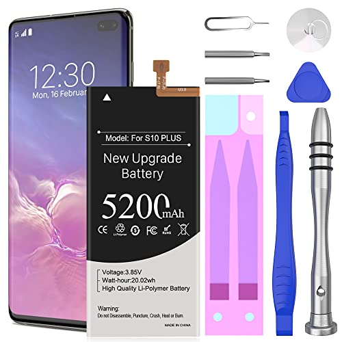 5200 mAh - Batteria per Samsung Galaxy S10 Plus, High Capacity Batteria di ricambio per Galaxy S10+ SM-G975F G975U G975W G975U1 G9750 G975N G975X con kit di strumenti di riparazione professionali