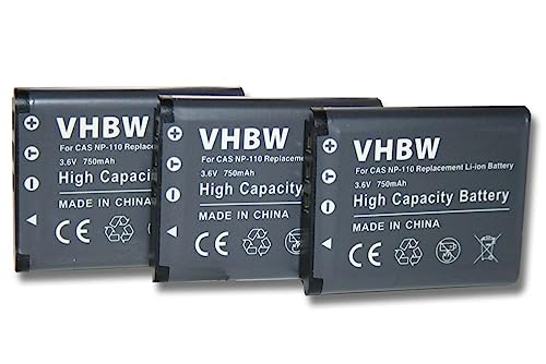 Vhbw 3x batteria sostituisce Casio NP-110, NP-110DBA, NP-110L, NP-160 per fotocamera digitale DSLR (750mAh, 3,6V, Li-Ion)