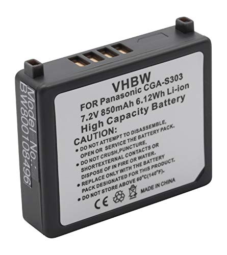Vhbw batteria sostituisce Panasonic CGA-S303, CGA-S303E compatibile con videocamera camcorder (850mAh, 7,2V, Li-Ion)