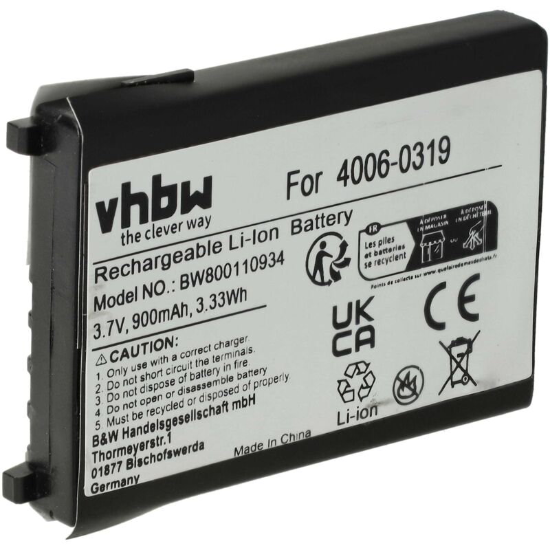 Vhbw - the clever way - Batteria ricaricabile di ricambio, compatibile e di alta qualità, ad alta capacità, per lettore di codici a barre (Può trovare tutti i modelli corrispondenti qui di seguito) - Le nostre batterie ricaricabili soddisfano tutti i requisiti rilevanti per la sicurezza operativa CONTENUTO DELLA SPEDIZIONE: - 1x batteria ricaricabile SPECIFICHE TECNICHE: - Tecnologia: Li-Ion - senza effetto memoria - Capacità: 900 mAh - Tensione: 3,7 V - Energia: 3,33 Wh Per garantire la compatibilità, verificare se la batteria ricaricabile attualmente in uso è presente nell'elenco. SOSTITUISCE: - Unitech 201709, 1400-202501G Accessori e pezzi di ricambio di alta qualità. Per prolungare la durata di vita dei Suoi apparecchi elettrici.