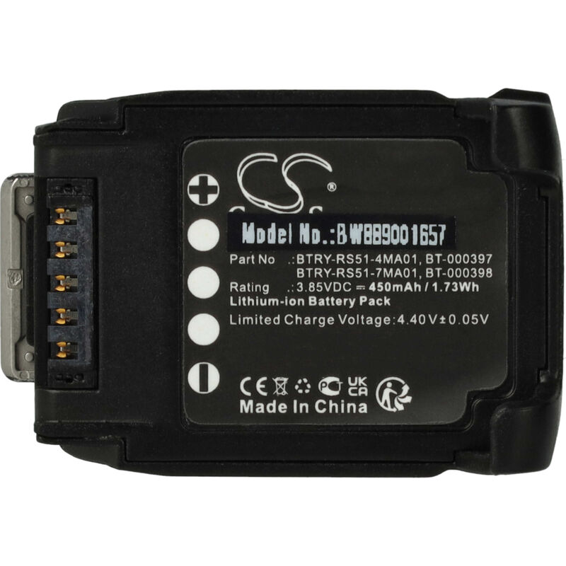 Vhbw - the clever way - Batteria ricaricabile di ricambio, compatibile e di alta qualità, ad alta capacità, per lettore di codici a barre (Può trovare tutti i modelli corrispondenti qui di seguito) - La batteria può essere caricata con il Suo caricabatterie standard o con uno compatibile - Le nostre batterie ricaricabili soddisfano tutti i requisiti rilevanti per la sicurezza operativa CONTENUTO DELLA SPEDIZIONE: - 1x batteria ricaricabile SPECIFICHE TECNICHE: - Tecnologia: Li-Ion - senza effetto memoria - Capacità: 450 mAh - Tensione: 3,85 V - Energia: 1,73 Wh - Numero di celle: 1 Per garantire la compatibilità, verificare se la batteria ricaricabile attualmente in uso è presente nell'elenco. SOSTITUISCE: - Zebra BTRY-RS51-7MA01 Accessori e pezzi di ricambio di alta qualità. Per prolungare la durata di vita dei Suoi apparecchi elettrici.