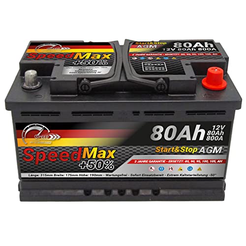 Batteria Auto Speed Max 80 Ah AGM Start&stop Speed 80Ah 800A 12V L4