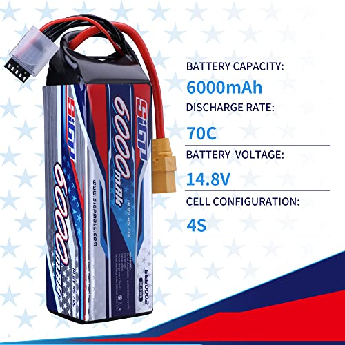 SIGP 4S Batteria Lipo da 14,8 V, 6000 mAh, 70 C, con XT90, per veicoli RC, auto, camion, serbatoio, barca, racing, hobby