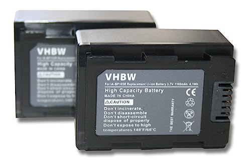 2 x Batterie VHBW 1100mAh per Videocamera Fotocamera Samsung SMX-F50, HMX-F50BN, SMX-F50BP, SMX-F54, SMX-F70, HMX-F80, HMX-H305