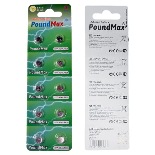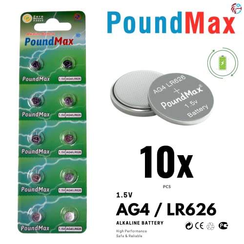 10 batterie AG4 376/377 LR66 SR626 SR626SW 1,5 V PoundMax a bottone alcalino