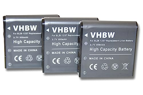 3 x batterie VHBW 950mAh compatibile con fotocamera Samsung SLB-1237, Epson EU-94, EPALB2, B31B173003CU, B32B818242, Sigma BP-31