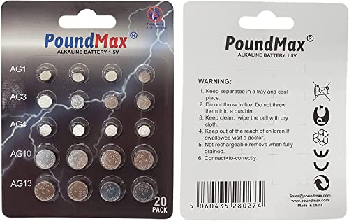 20 batterie alcaline miste AG1 AG3 AG4 AG10 AG13 PoundMax