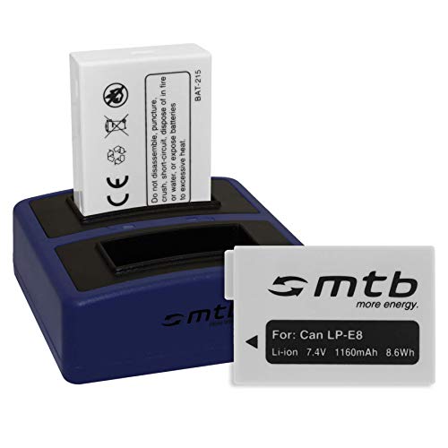 2 Batterie [1160 mAh] + Caricabatteria doppio Compact (USB) per Canon LP-E8 | EOS 700D, 650D, 600D, 550D - Cavo USB micro incluso (2 batterie simultaneamente caricabili)
