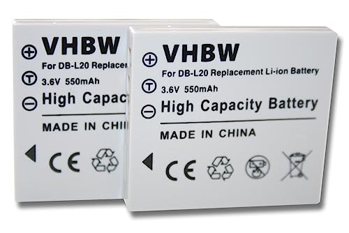2 batterie vhbw compatibile con fotocamera SANYO Xacti: VPC-J4 EX, VPC-C1, VPC-C4, VPC-C5, VPC-C6, VPC-C40 sostituisce DB-L20 / DB-L20A / DB-L20AEX