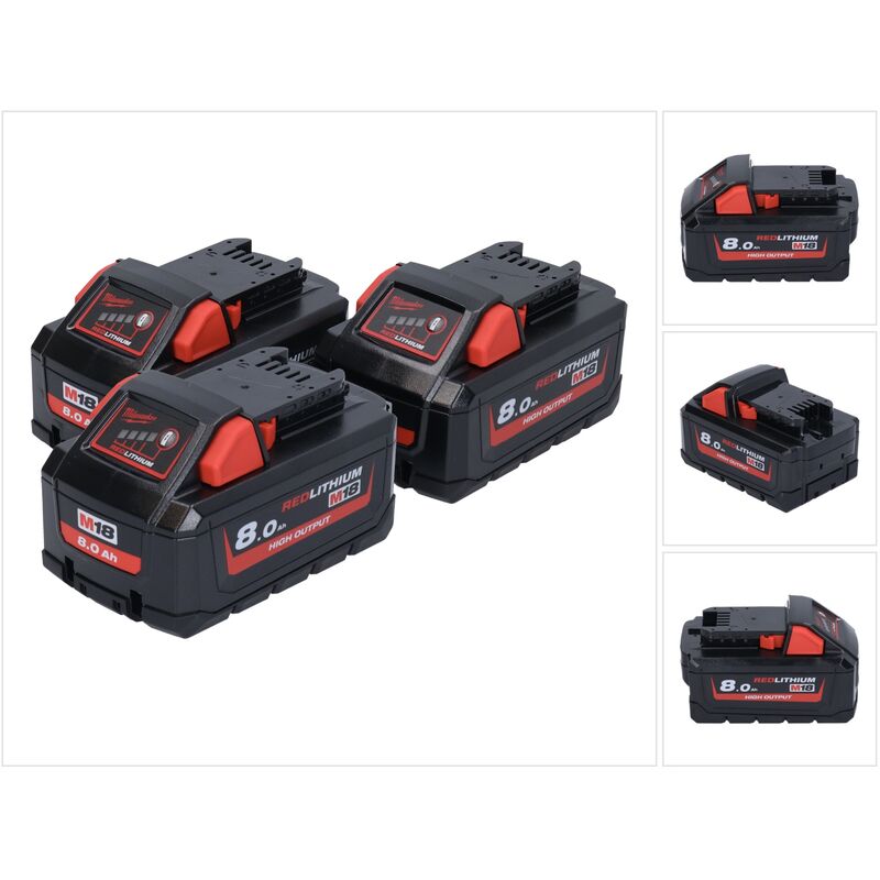 Contenuto della consegna: - 3x Batteria Milwaukee M18 HB8 18 V 8,0 Ah Li-Ion High Output ( 4932471070 ) Descrizione del prodotto: La batteria Milwaukee M18 High Output 8,0 Ah può fornire fino al 50% di potenza in più rispetto alle altre batterie M18. La batteria è dotata di elettronica REDLINK per prestazioni ottimali e protezione dalle sovratensioni per proteggere efficacemente l'utensile da eventuali danni. La gestione termica integrata mantiene la batteria Milwaukee M18 a una temperatura di lavoro ideale per una durata ottimale. La tecnologia brevettata all'interno della batteria garantisce una potenza ottimale. Inoltre, l'M18 è dotato di un sistema di monitoraggio delle celle che assicura una carica e una scarica ottimali. Una struttura metallica all'interno della batteria garantisce una protezione affidabile contro le forti vibrazioni e le cadute. Naturalmente, la batteria è compatibile con l'intera gamma Milwaukee M18. Milwaukee è un produttore leader di utensili elettrici, che