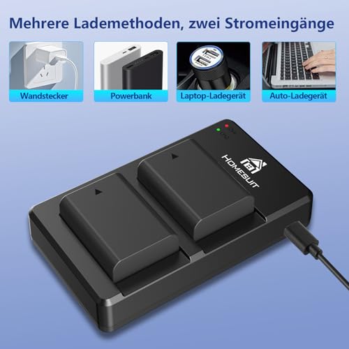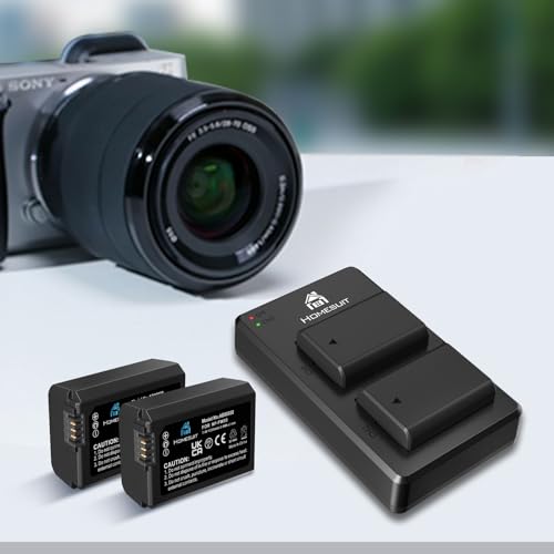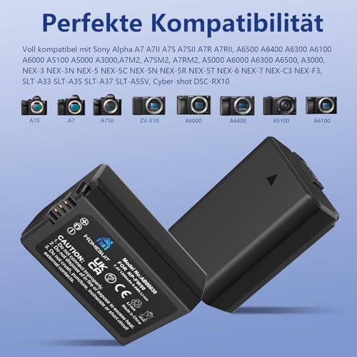 Batterie NP-FW50 Homesuit e kit doppio caricatore USB per Sony A6000 Batteria, A6500, A6300, A7, A7II, A7RII, A7SII, A7S, A7S2, A7R, A7R2, A55, A5100, RX10 Accessori (2-Pack, porta micro USB, 1300mAh)