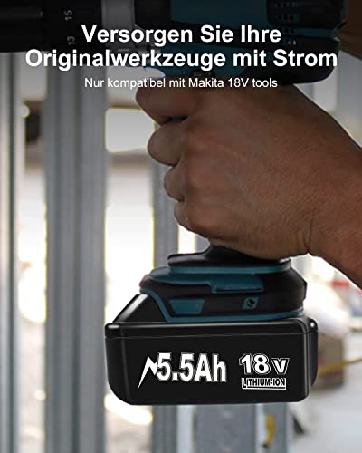 2 batterie di ricambio Li-Lon da 5,5 Ah BL1860B e 3 A, per Makita 18 V BL1860B BL1860, BL1850B, BL1850, BL1840, BL1845 BL1850 194205-3 LXT-400 con batteria per attrezzi a LED