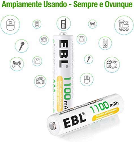 【Basso Auto-Scarico 】- Le EBL AAA pile ricaricabili mantenerà 80% della capacità iniziale anche 3 anni di inutilizzo, è altamente raccomandato di ricaricare completamente la batteria ogni 3 mesi.