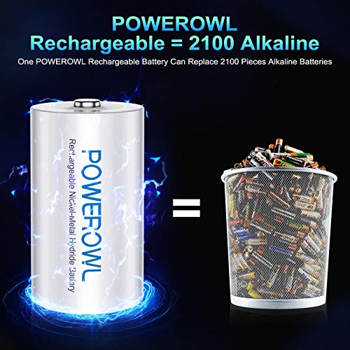 Batterie Ricaricabili D,POWEROWL 10000mAh Pile Ricaricabile Stilo D Torcia D HR20 Mono,Confezione da 4 Pezzi (1200 cicli, 1,2 V, Ni-MH)