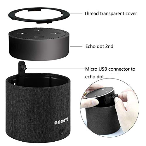 Battery Base for Echo Dot 2, Accevo 10000mAh External Batteries Protective Cover for 2nd Generation Echo Dot Alexa (Black)