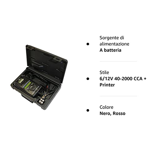 Tester professionale con stampante integrata per tutte le batterie 6/12V (tradizionali, al Gel, mf, AGM, VRLA) da 40 a 2000 CCA (sae) e per sistemi di avviamento e carica 12/24V