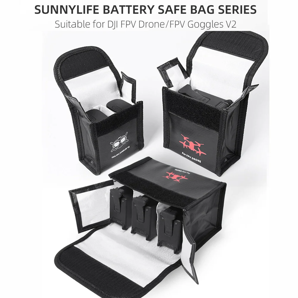Battery Safe Bag for DJI FPV Drone Goggles V2 Battery Explosion Proof Bag Safety Storage Cas Velcro Closure Radiation Protection