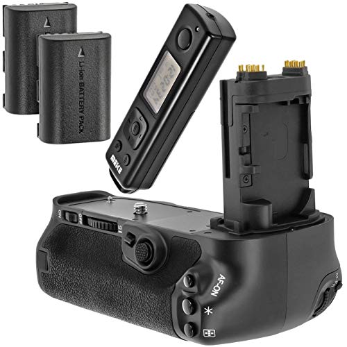 Battery Grip - Impugnatura portabatteria per Canon 5D Mark 4, equivalente a BG-E20, con 2 batterie LP-E6 da 1600 mAh, con telecomando a 2,4 GHz