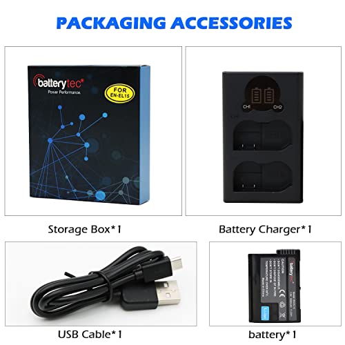 Batterytec Replacement telecamera Batteria per Nikon Z6 Z7 EN-EL15, Nikon Z 7II Z 6II Z7 Z6 Z5D7200 D7500 D800 D800E D610 D750 D810 D810A D850 P520 P530.,e kit doppio caricatore LED.