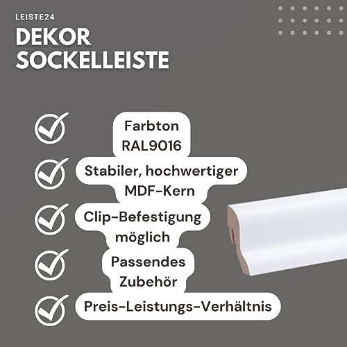 Battiscopa in MDF, 26 m, con anima in MDF, 40 x 22 x 2600 mm, bianco