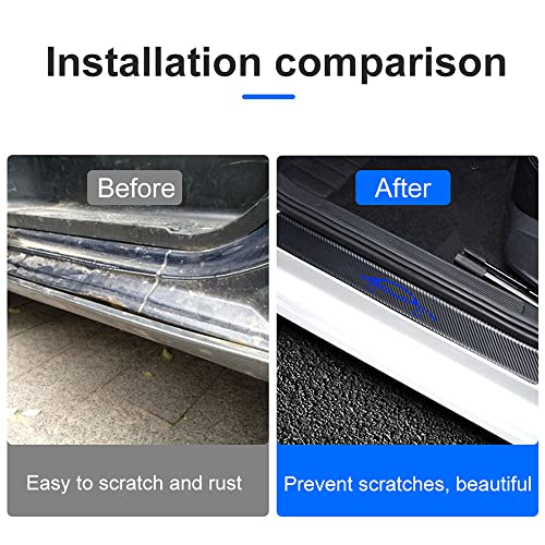 4D battitacco in Fibra di Carbonio Adesivo Riflettente, Logo Auto, Protezione della Vernice, Adesivo su Misura, Protezione AntiGraffio per Pedali, Copertura per soglia di Copertura, 4 Pezzi, Blu