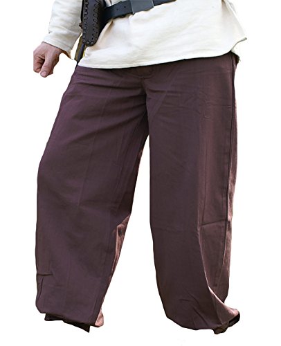 Battle Merchant Pantaloni medioevali Cintura Pantaloni, Marrone Scuro di Cotone - Larp Medioevo Vichingo - XXL