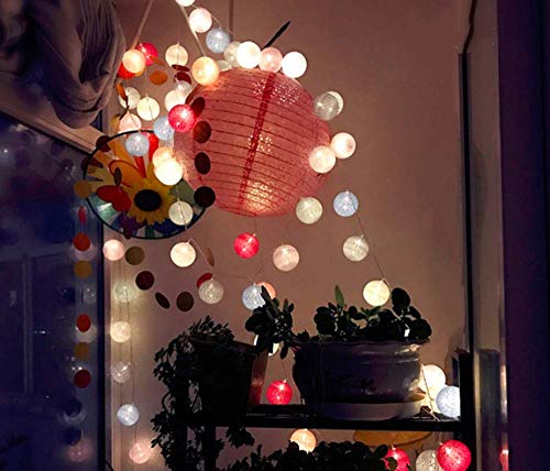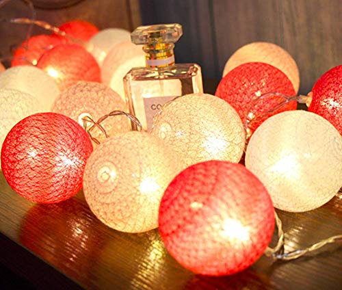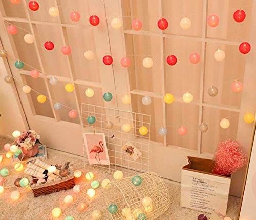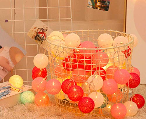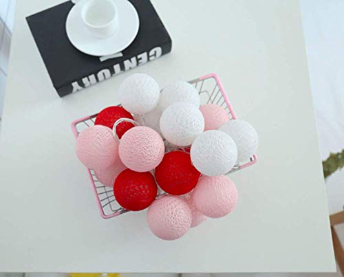 U/S Batuffolo di Cotone con Luci delle Fate, 3M 20LED Macaron Globe String Lights Luci per Interni a Batteria per Natale a Casa (Rosa)