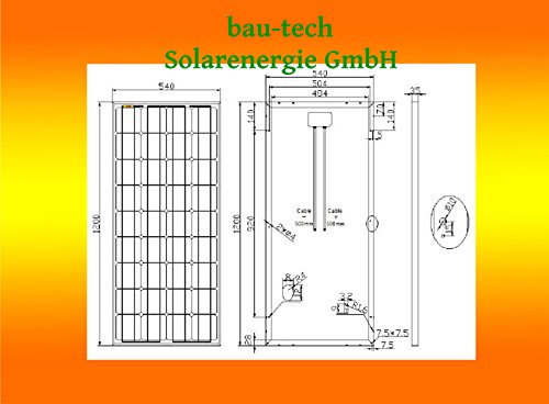 Bau-tech Solarenergie 100Watt 12V Modulo Solare Pannello Solare Fotovoltaico Cella Mono-Cristallino GmbH