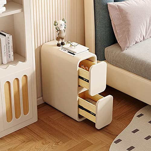 BAUBUY Comodino stretto con 2 cassetti Comodino in pelle in microfibra Tavolino da divano sottile minimalista per piccoli spazi Mobili per camera da letto