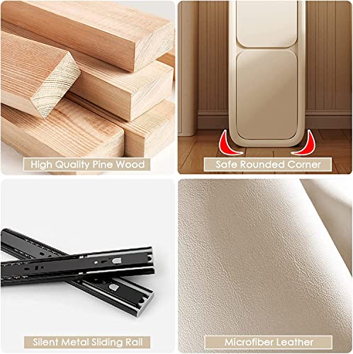 Materiale di qualità: questo mobile per camera da letto in stile moderno della metà del secolo è ben progettato, non solo bello ma anche molto pratico. Il comodino è realizzato principalmente in legno di pino, stabile e durevole, la superficie liscia in pelle in microfibra è facile da pulire e asciugare.