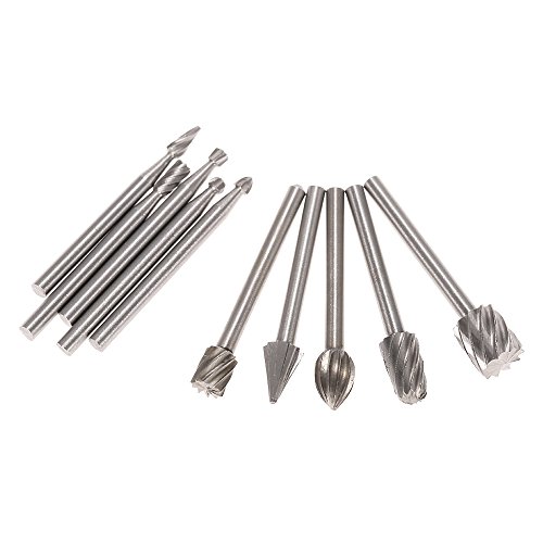 Baugger Frese Del Rotary - Accessori Grinding Elettrica 10Pcs 3Mm Shank HSS Frese Rotary Burr per Drill Lavorazione del Legno Tool set Incidere di Cnc