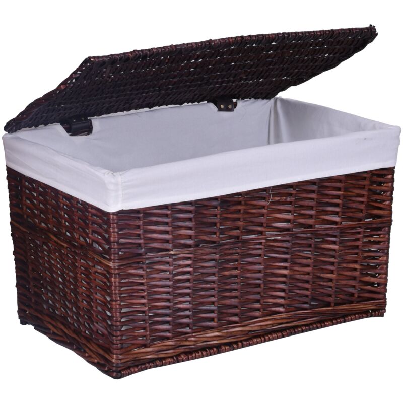 Cesto in vimini 46x76x46 cm Destinazione d'uso: bagno, camera da letto | Colori: marrone Il cestino in vimini è perfetto per riporre la biancheria in bagno. È un'aggiunta molto bella che aggiunge carattere alle stanze decorate. Il prodotto è esteticamente realizzato in midollino e rifinito con fodera interna in lino. La copertura è dotata di cinghie elastiche che fungono da cerniere. Caratteristiche del prodotto Capacità 160 litri Vimini naturale al 100% Intrecciato a mano Centro rifinito con fodera in lino Cerniere del coperchio flessibili ed estetiche Dimensioni del prodotto Altezza: 46 cm Larghezza: 76 cm Profondità: 46 cm Informazioni aggiuntive I colori mostrati sono solo a scopo illustrativo - potrebbero differire da quelli reali a causa delle diverse impostazioni dei monitor e del processo di elaborazione delle foto. Le dimensioni effettive potrebbero differire da quelle sopra indicate. La tolleranza dell'errore può essere +/- 5%. Produttore: Gockowiak Codice prodotto: KUFER