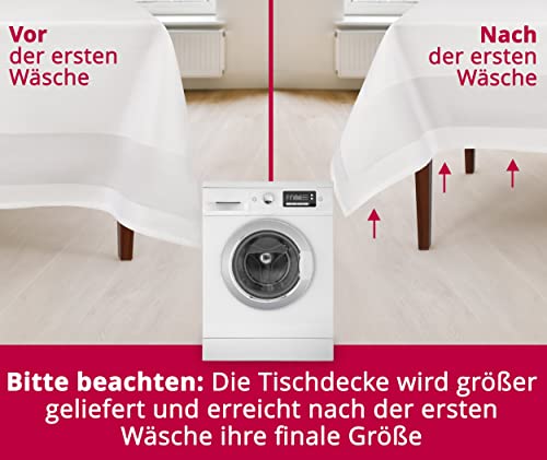 DHT Baumwolle - Tovaglia damascata, 130 x 280 cm, Lavabile Fino a 95°, Colore: Bianco