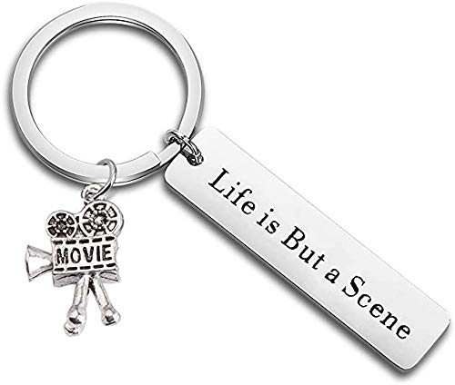 BAUNA - Portachiavi per fotocamera con film "Life is But a Scene", con scritta "Life is But a Scene" (lingua italiana non garantita) e Acciaio inossidabile, colore: Portachiavi scena, cod. a44