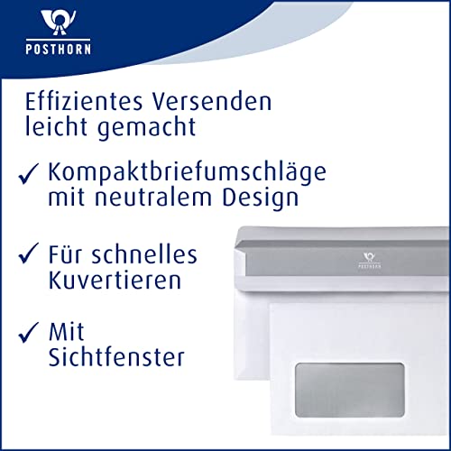 Bong Bauwens 2239144 - Busta compatta con finestra, chiusura a pressione, 125 x 235 mm, confezione da 1.000, colore: Bianco