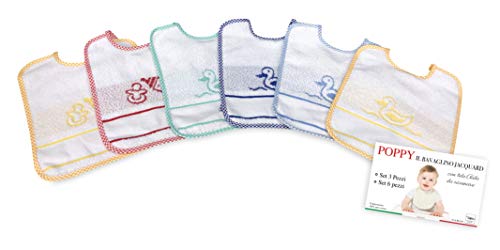 SET BAVAGLINI BAMBINO MASCHIO POPPY © cm. 20x24 bavaglio con lacci e tela AIDA - 6 PEZZI