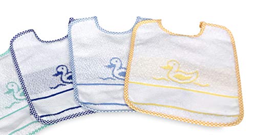 Set bavagli ideali per bambini realizzati in spugna di puro cotone jacquard dotati di tela aida per poterli ricamare.
