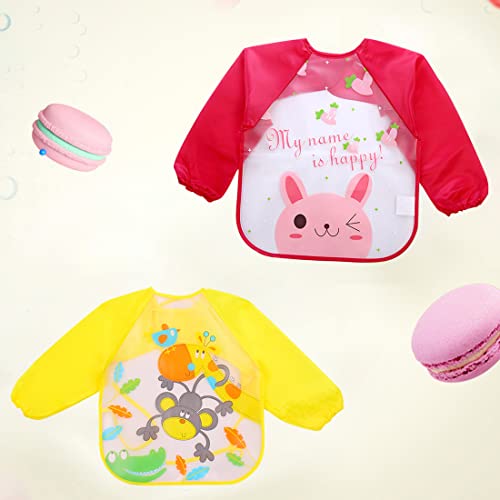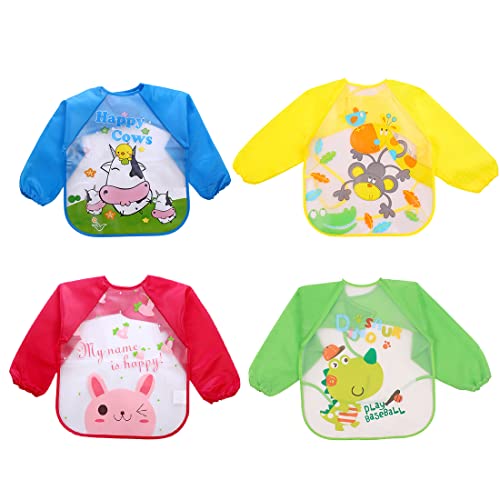 Bavaglini con Maniche, 4 Pezzi Bavaglino a Manica Lunga Grembiule Pappa, Bavaglino Bambini Impermeabile per Dipingere, Giocare e Mangiare 6 Mesi a 3 Anni (4 Design)