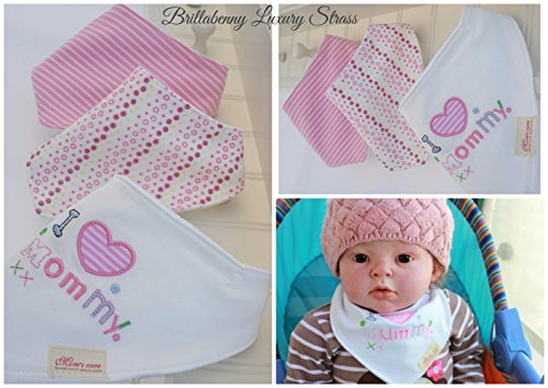 SET 3 BAVAGLINI BABY MODELLO BANDANA"I LOVE MOMMY" 100% Cotone Bavetti x Bimba e Neonato Bibs Infant