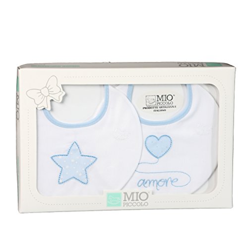 Set 2 Bavaglini Neonati Ricamati Mio Piccolo Love Puro Cotone Celeste