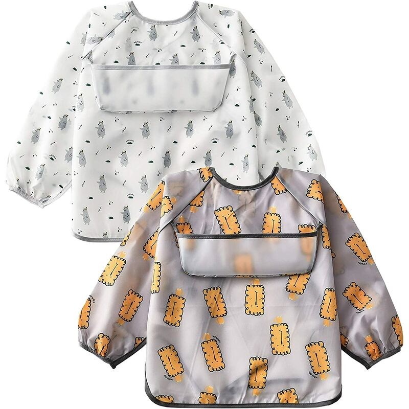 IMPERMEABILE E LEGGERO - Questo bavaglino può essere in una certa misura impermeabile, il cibo e la zuppa non bagnano i vestiti quando il bambino mangia. Ed è molto leggero e sottile, il che significa che il bambino sarà molto comodo da indossare. TASCA IMPERMEABILE - L'ampia tasca sul petto è foderata in EVA, che è effettivamente impermeabile e oleosa e facile da pulire. Questa grande tasca è reversibile e può essere utilizzata come tasca quando necessario. Può catturare la maggior parte del cibo e della zuppa che cadono. Può essere nascosto quando non serve, il che è molto comodo. POLSINI ELASTICI - I polsini dei nostri bavaglini sono molto flessibili, possono adattarsi al polso del bambino, il che significa che il cibo non è facile da penetrare le maniche e macchia i vestiti.