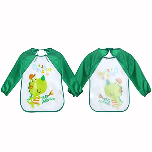 UEB Bavaglino Impermeabile con Maniche Lunghe Grembiule per Bambini (Dinus verde)