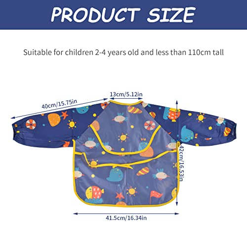Bavaglino a Maniche Lunga, Bambini Bavaglino a Manica Impermeabile Bavaglino con il Cibo Catcher Tasca Lavabile Grembiule di Cotone per Unisex 2-4 Anni, Modello Pianeta Blu Scuro
