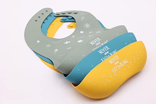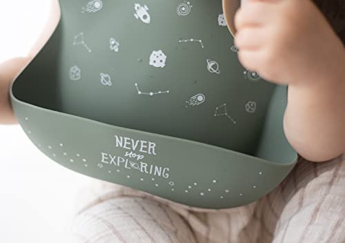 Loo.Up Bavaglino in silicone Sage Never Stop Exploring di altissima qualita impermiabile e regolabile al collo del bambino con tasca raccogliebriciole Bavaglino svezzamento.